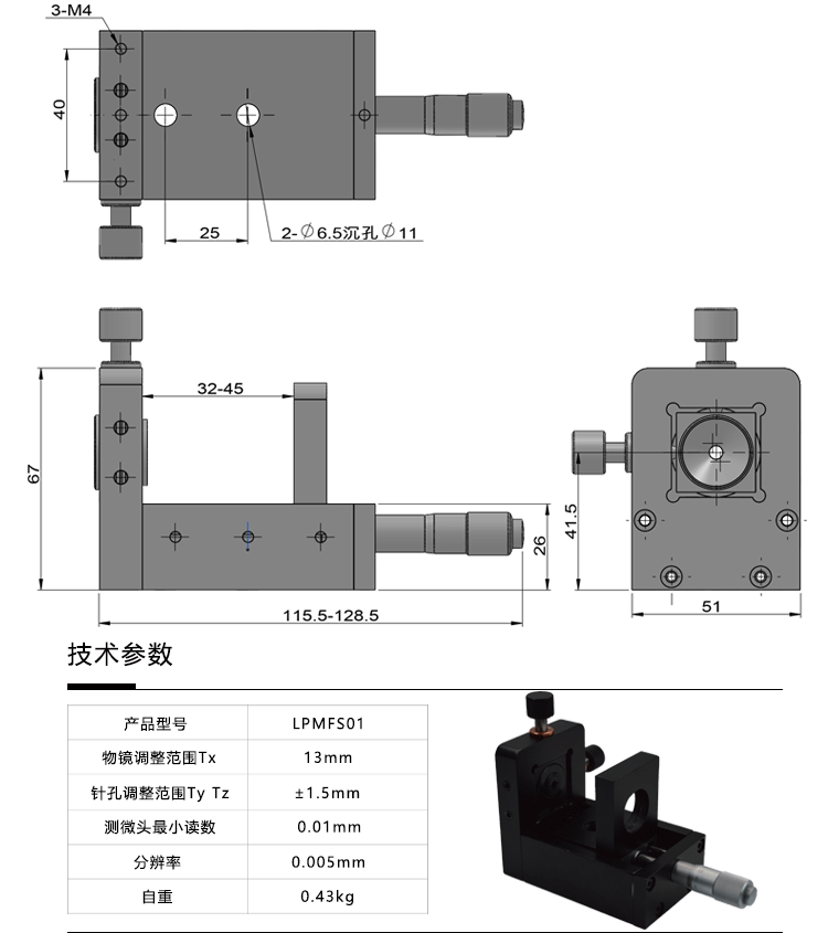 產(chǎn)品詳情 LPMFS01空間濾波器光闌調(diào)整座 光學(xué)實(shí)驗(yàn) 通光測(cè)試 遮光擋光實(shí)驗(yàn) 在線咨詢 產(chǎn)品詳情 ● 配有標(biāo)準(zhǔn)顯微物鏡座和針孔座; ● 顯微物鏡座用測(cè)微頭調(diào)整,可連續(xù)定量調(diào)整物鏡與針孔之間的距離; ● 導(dǎo)軌采用精密線性滾珠導(dǎo)軌副,運(yùn)動(dòng)舒適、精度高; ● 針孔座由兩個(gè)M6X0.25細(xì)牙螺桿兩維精確調(diào)整針孔位置。 本產(chǎn)品主要用途是通過顯微物鏡和針孔的配合使用,將在傳輸過程中由于 所通過的光學(xué)器件的缺陷和空氣中的微粒散射而對(duì)能量分布產(chǎn)生影響的激 光束還原。這對(duì)光學(xué)實(shí)驗(yàn)及相關(guān)研究尤其是全息領(lǐng)域和光學(xué)數(shù)據(jù)處理方面 非常重要。使用時(shí)將空間濾波器置入光路中,使激光束射入顯微物鏡,調(diào) 整空間濾波器使從顯微物鏡反射回來的光束與入射光束完全重合,然后調(diào) 整針孔位置及物鏡與針孔距離,使光束準(zhǔn)確聚焦在針孔上,即完成調(diào)整。
