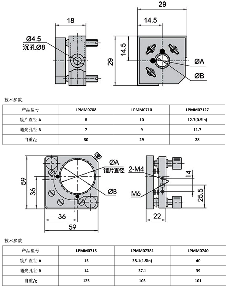 產(chǎn)品詳情 LPMM07系列兩維調(diào)整鏡架 實驗設(shè)備透鏡鏡片固定安裝 在線咨詢 產(chǎn)品詳情 ● M6×0.25細(xì)牙螺桿調(diào)整(部分配銅螺母) ● 拉簧復(fù)位,復(fù)位力均勻,減少應(yīng)力 ● 調(diào)整范圍±3° ● 三點聚四氟乙烯支撐,保護鏡片 ● 兩個方向安裝孔,適合不同光路方向 調(diào)整鏡架可將鏡片進行兩維傾斜或多維固定調(diào)整。調(diào)整螺桿采用M6×0.25細(xì)牙 螺桿,提供精細(xì)調(diào)整。根據(jù)不同的鏡片裝卡方式,不同的裝卡直徑,不同的調(diào) 整螺桿,不同的彈性復(fù)位方式分出近百種規(guī)格,廣泛應(yīng)用于與光學(xué)相關(guān)的科研, 教學(xué),工業(yè)產(chǎn)品特別是激光打標(biāo),激光焊接,激光雕刻,激光劃片等激光加工 設(shè)備上。