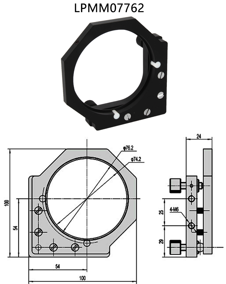 產(chǎn)品詳情 LPMM07系列兩維調(diào)整鏡架 光學(xué)實驗鏡片安裝鏡片位移調(diào)整 在線咨詢 產(chǎn)品詳情 ● M6×0.25細(xì)牙螺桿調(diào)整(配銅螺母) ● 拉簧復(fù)位,復(fù)位力均勻,減少應(yīng)力 ● 調(diào)整范圍±3° ● 三點聚四氟乙烯支撐,保護鏡片 ● 兩個方向安裝孔,適合不同光路方向 調(diào)整鏡架可將鏡片進行兩維傾斜或多維固定調(diào)整。調(diào)整螺桿采用M6×0.25細(xì)牙 螺桿,提供精細(xì)調(diào)整。根據(jù)不同的鏡片裝卡方式,不同的裝卡直徑,不同的調(diào) 整螺桿,不同的彈性復(fù)位方式分出近百種規(guī)格,廣泛應(yīng)用于與光學(xué)相關(guān)的科研, 教學(xué),工業(yè)產(chǎn)品特別是激光打標(biāo),激光焊接,激光雕刻,激光劃片等激光加工 設(shè)備上。