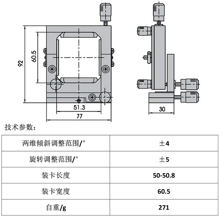 產(chǎn)品詳情 LPMMC251三維調(diào)整柱面鏡架 光學實驗鏡片安裝鏡片位移調(diào)整 在線咨詢 產(chǎn)品詳情 ● 可做兩維正交共面傾斜調(diào)整,并繞光軸旋轉(zhuǎn)調(diào)整 ● 可裝卡兩種尺寸的平凸或平凹柱面鏡,水平或豎直放置 ● 三維調(diào)節(jié),裝卡方便穩(wěn)定 偏光鏡架可將鏡片進行兩維傾斜或多維固定調(diào)整。調(diào)整螺桿采用細牙螺桿,鎖 緊手輪等固定方式,提供精細調(diào)整。根據(jù)不同的鏡片裝卡方式,不同的裝卡直 徑,不同的調(diào)整螺桿,不同的彈性復位方式分出近百種規(guī)格,廣泛應用于與光 學相關的科研,教學,工業(yè)產(chǎn)品特別是激光打標,激光焊接,激光雕刻,激光 劃片等激光加工設備上。