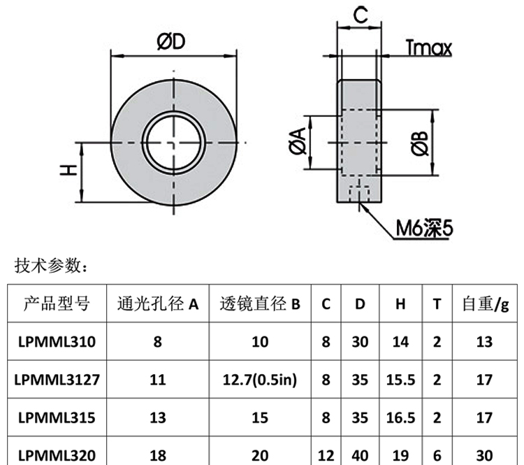 產(chǎn)品詳情 LPMML3系列光學(xué)透鏡架 光學(xué)實(shí)驗(yàn)鏡片安裝座透鏡支架 在線咨詢 產(chǎn)品詳情 ● 用于裝卡圓形透鏡鏡片 ● 裝卡規(guī)格直徑10-100mm可選 ● 可夾持多種規(guī)格的透鏡 ● 內(nèi)有聚四氟乙烯襯墊保護(hù)透鏡 ● 底部M6螺紋孔方便安裝 光學(xué)透鏡架LPMML3系列適合多種直徑透鏡鏡片規(guī)格,透鏡鏡片直徑包含范圍 10-100,透鏡架根據(jù)不同的鏡片裝卡方式,不同的裝卡直徑,不同的調(diào)整螺桿 ,不同的彈性復(fù)位方式分出近百種規(guī)格,廣泛應(yīng)用于與光學(xué)相關(guān)的科研,教學(xué), 工業(yè)產(chǎn)品特別是激光打標(biāo),激光焊接,激光雕刻,激光劃片等激光加工設(shè)備上。