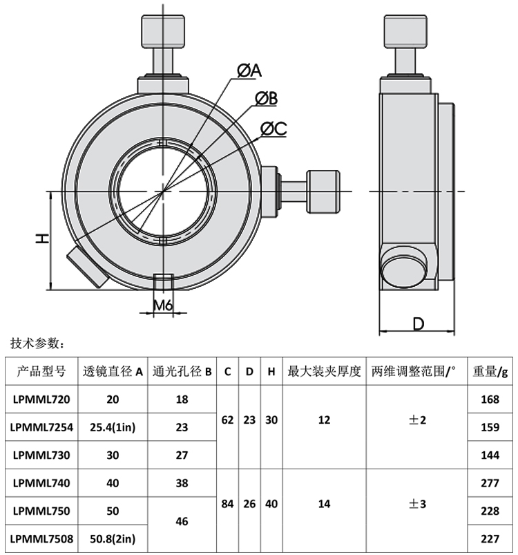 產(chǎn)品詳情 LPMML7系列兩維調(diào)節(jié)透鏡架 光學(xué)實(shí)驗(yàn)鏡片安裝鏡片位移調(diào)整 在線咨詢 產(chǎn)品詳情 ● 可實(shí)現(xiàn)兩維平移調(diào)整(水平、垂直) ● 壓簧復(fù)位,局部細(xì)節(jié)設(shè)計(jì)最大限度降低兩維平移的相互干擾 ● 調(diào)整采用M6×0.25細(xì)牙螺桿,研配銅螺母,保證使用精度 ● 內(nèi)有聚四氟乙烯襯墊保護(hù)鏡片 調(diào)整鏡架可將鏡片進(jìn)行兩維傾斜或多維固定調(diào)整。調(diào)整螺桿采用M6×0.25細(xì)牙 螺桿,提供精細(xì)調(diào)整。根據(jù)不同的鏡片裝卡方式,不同的裝卡直徑,不同的調(diào) 整螺桿,不同的彈性復(fù)位方式分出近百種規(guī)格,廣泛應(yīng)用于與光學(xué)相關(guān)的科研, 教學(xué),工業(yè)產(chǎn)品特別是激光打標(biāo),激光焊接,激光雕刻,激光劃片等激光加工 設(shè)備上。